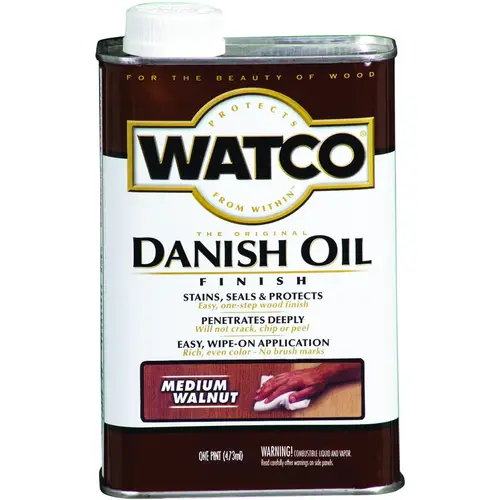 WATCO Danish oil is a unique blend of penetrating oil and varnish hardens in the wood, not on the wood. WATCO Danish oil penetrates deep into wood pores to protect from within and to enhance the natural look and feel of the wood. It creates the rich, warm glow of a traditional hand-rubbed finish. Many projects can be completed in less than an hour, simply brush or wipe-on and wipe-off. WATCO Danish oil is the choice of fine woodworkers and novices alike.