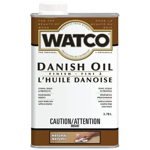 WATCO Danish oil is a blend of penetrating oil and varnish that hardens in the wood, not on the wood surface. WATCO Danish oil penetrates deep into wood pores to protect from within and to enhance the natural look of the wood. It creates a rich color of a traditional hand-rubbed finish. Many projects can be completed in less than an hour. Danish oil is easy to use. Simply brush or wipe on and wipe off.