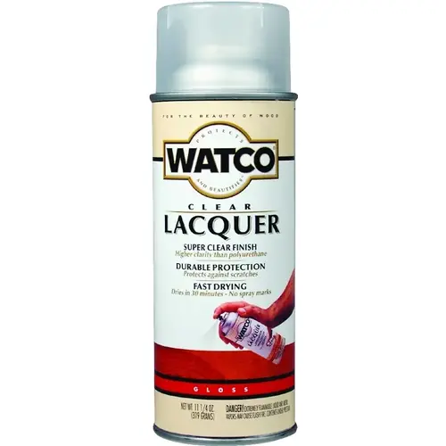 WATCO Lacquer clear wood finish spray is the finest lacquer available. Apply to furniture, doors, cabinets and paneling for a crystal-clear, durable wood finish and seal. Dries in 30 mins and does not require sanding between coats. Please read product labels for additional directions and precautions before using.