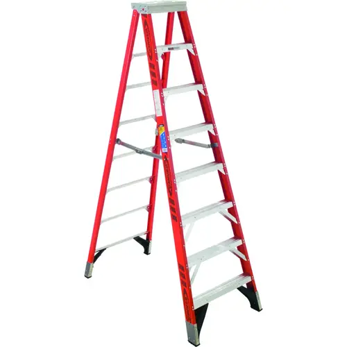 Built to last, the WERNER 375 lb duty-rated 7408 fiberglass 6 ft step ladder is rugged and ready for the job. This ladder features extra heavy-duty aluminum HolsterTop, internal spreaders and external rail shields for long lasting durability. With The EDGE bracing system and GLAS*MARK violator stripes on the rails, the 7400 Series is built to handle the worksite and stands ready for tough jobs. Fiberglass rails are non-conductive for working near electricity.