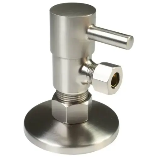 • Westbrass Angle Stop, Round 1/4-Turn Ceramic Disc, 1/2 In. Copper Compression X 3/8 In. Compression, In Satin Nickel