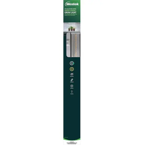 Westek Under Cabinet Grow Light, 120 V, LED Lamp, 90 CRI, 4000 K Color Temperature, 650 Lumens , Warm White Light, Fixture Material: Plastic, Fixture Color: White, Dimensions: 1 in H x 18 in W x 2-1/2 in D, Screw Mounting