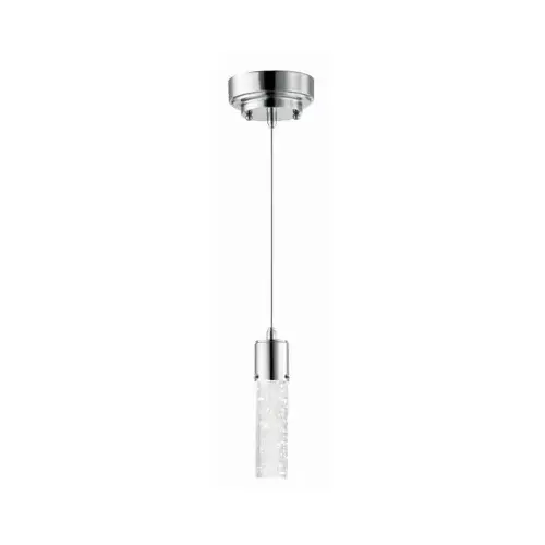 Westinghouse Mini Pendant Light, 120 V, Lamp Wattage: 8 W, Number of Lamps: 1, Lamp Type: LED, Average Life: 25,000 hr, Color Rendering Index (CRI): 80, Color Temperature: 3000 K, Lumens: 450 Lumens, Light Color: Warm White, Shade Type: Bubble, Shade Material: Glass, Shade Color: Clear, Ballast/Driver Type: Dimmable, Fixture Material: Metal, Fixture Finish: Chrome, Dimensions: 5 in Dia x 61-1/16 in H, Hanging Device Length: 50 in, Includes: Mounting Hardware