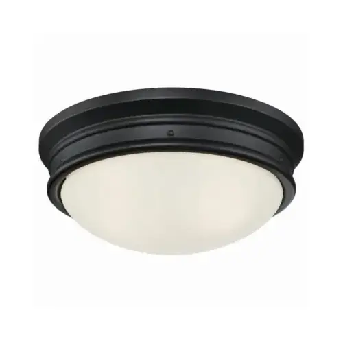 The Meadowbrook 2-light ceiling fixture will add a hint of nautical style to any room. A frosted half-moon dome beautifully contrasted by matte black finish. The wide trim and detailing add distinctive structure and character to this flush mount fixture. This traditional light blends beautifully with any decor, provides inviting ambiance and can be installed on low or high ceilings. Perfect for an entryway, dining room, bedroom or hallways.