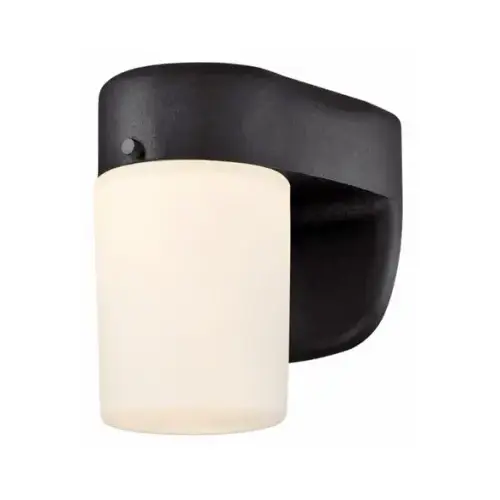 This traditional style LED outdoor wall fixture, featuring a black finish with frosted opal hand blown glass, complements any outdoor setting. The energy-efficient, integrated LED provides long-lasting, maintenance-free illumination and a safely lit environment outside your home. Save time and conserve electricity with the built-in dusk to dawn photocell. It conveniently turns the fixture light on at dusk and off at dawn.