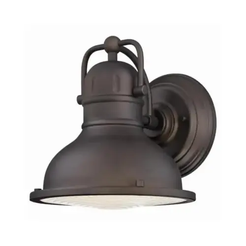 Orson energy efficient integrated one light LED wall lantern with vintage inspired style. Designed with industrial detail this outdoor wall lantern complements many styles from vintage to industrial farmhouse to nautical. Rich oil rubbed bronze finish paired with prismatic lens creates a vintage look. This fixture features integrated LED technology with no bulbs to replace. Consumes only 9 W, 80% less energy than an incandescent fixture, with the brightness equivalent to 1 to 40 W or 2 to 25 W incandescent bulbs. Formed of steel, this lantern with oil rubbed bronze finish is durable for outdoor installation. Install this lantern in your front or back entryway or by your garage door. You can also use it to create a rustic accent for your porch, deck, patio, balcony or side entrance. No matter where you place it, you will enjoy the lantern's inviting light while saving money.