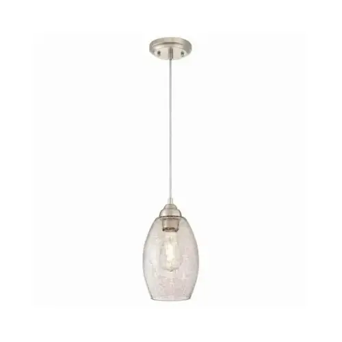 This lovely brushed nickel mini pendant with crackle glass reflects geometric patterns or fractals when illuminated. The bright glow and textured appearance of this chic mini pendant make a unique impression that transforms any space. Install in your entranceway for an eye-catching statement or in the living or dining room for casual elegance. Hang two or three over a kitchen island for bright lighting and fascinating charm.
