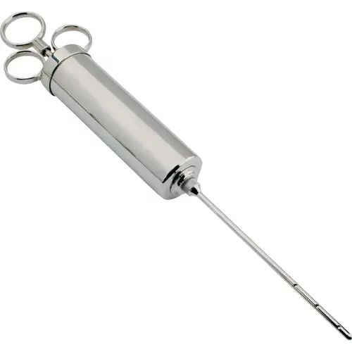 Inject your favorite flavored herbs, butter, sauces or marinades under the skin of nay wild game or turkey, beef, pork, chicken or even fish for added flavor and juicy moisture.