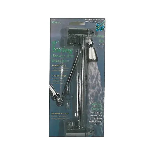 Installs easily between any standard shower head and arm with standard 1/2 in threads. Adjusts shower height a total of 18 in, 9 in swing shower arm swings up for tall people and down for kids and keeping hair dry.