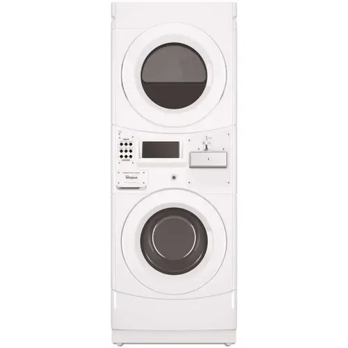 Maximize floor productivity with the stack washer/dryer that's built to give laundry facilities the durability and performance needed to withstand the heavy traffic of commercial laundry all within the space of a single unit. Built from heavy, galvanized steel and a porcelain-enamel top the cabinet has been designed to increase machine longevity and handle regular usage. The powerful drive system was engineered and tested to provide more turns over the life of the washer, and provide customers with an exceptional cleaning experience. A 6-point suspension with four dampers and two springs delivers automatic load balancing keeping cycle times consistent to help optimize laundry efficiency. Owners can take advantage of the microprocessor controls with customizable vend prices and cycle options giving them more opportunities to generate revenue. This also lets customers choose which cycle selection best fits their washing needs. Plus, the advanced dryer venting system delivers an optimal drying performance, helping laundry facilities cut utility costs and run with efficiency. The Whirlpool Commercial Laundry stack washer/dryer is coin-drop ready, ENERGY STAR qualified, and backed by a 90-day labor/2-year limited parts only warranty.