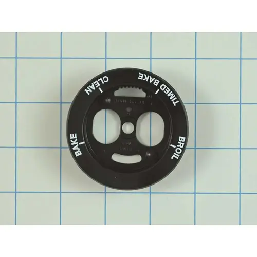 Black colored Oven Temperature Dial with "Timed" and "Clean" notations. Follow the instructions in your owner's manual when installing this part.. Mfg #WP311068