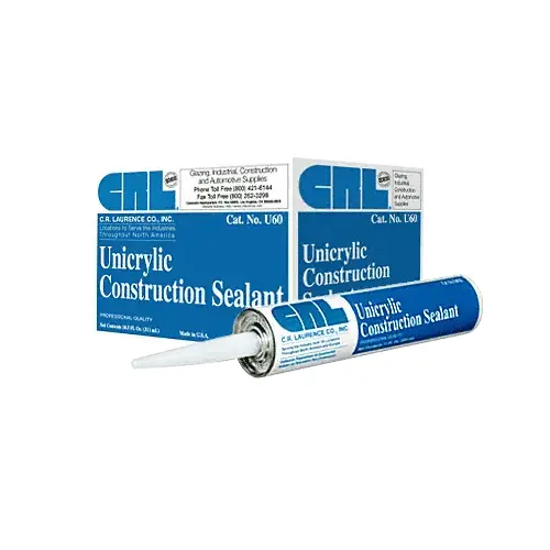 CRL U60 Unicrylic is a one-part polymer sealant that has superior adhesion qualities and elasticity. It is recommended wherever durable and elastic joint sealants are required. U60 can be used on both porous and non-porous surfaces. It is excellent for perimeter caulking of windows, doors, panels or expansion joints, and bedding mullions. Ideal for glazing work such as filling complete channel, cap bead over tape, heel bead, back bedding, etc. It can be easily applied without priming to glass, masonry, metal, wood and porcelain. The sealant remains elastic indefinitely and has a unique resealing characteristic. In order to help you better select the correct sealant, we have put together a Silicone and Sealant Selector Chart. You need to have Adobe Acrobat Reader installed in order to view this chart. You can download this Free software on the Adobe.com website by going HERE. Applies with a standard size hand, battery or air powered caulking gun to properly prepared surfaces. TECHNICAL DATA: Meets Federal Specifications TT-S-00230 and 19GP5M.