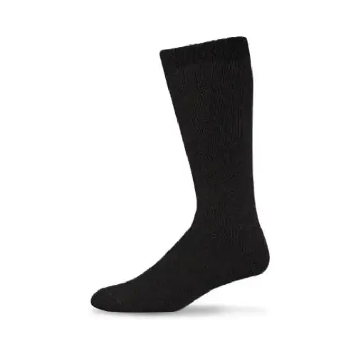 Extra Large Size, Black, Full Cushioned Thermal Boot Sock, 1x1 Mock Rib Welt Top, Smooth Loop Toe Seam, Boot Length Is Proportional To Size, 50% Wool, 48% Nylon, 2% Spandex, Temperature Rated For Cold Weather.