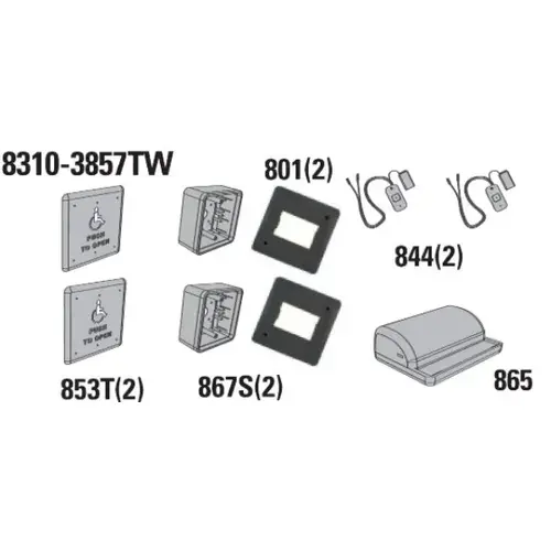 8310-853T (2) Wall Mount Actuator; 8310-867S (2) Surface Mount Box; 8310-801 (2) Weather/Trim Ring; 8310-844 (2) Transmitter; 8310-865 Receiver