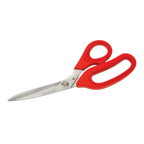 The Crescent Wiss 8-1/2 in home and craft scissor is great for around the home craft use. The scissors feature soft comfort grips with an oversized, high-leverage bottom ring for easy use. The serrated lower blade grips materials securely to keep cuts even.
