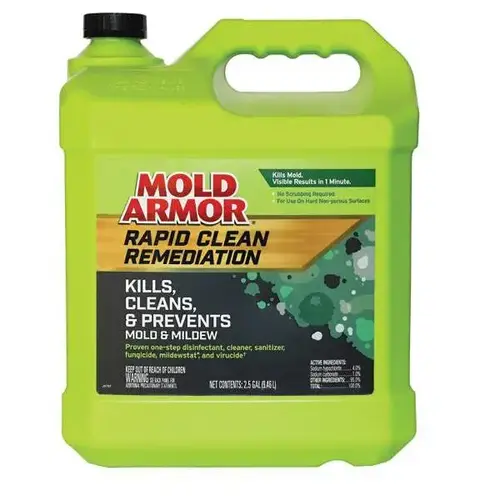 Rid your home of mold and mildew stains with Mold Armor Instant Mold and Mildew Stain Remover. Its powerful bleach-based formula penetrates and removes mold and mildew stains, allowing you to clean without scrubbing. Simply spray on, wait 10 minutes, rinse off and you have instant results.