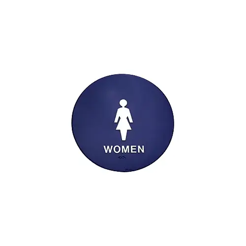 This CRL Women's Restroom Sign is constructed of high impact polystyrene. Designed to meet building codes in most states, the 12" (304.8 mm) round sign with raised 1/8" (3 mm) thick "women" symbol and wording, can be mounted to any surface using double faced adhesive tape. This sign no longer has raised braille dots due to liability laws. Important Notes: This sign no longer has raised braille dots due to liability laws.