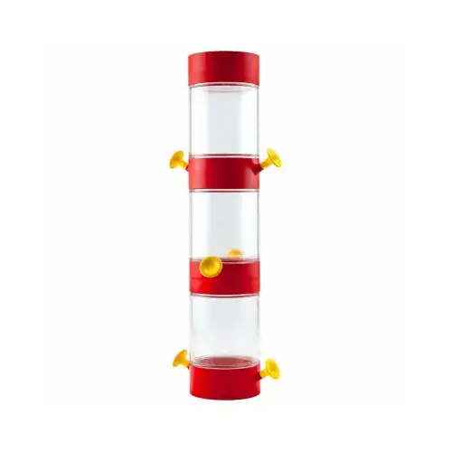 Modular Hanging Hummingbird Feeder. Clever modular design to attract the most hummingbirds! Stacking modular hanging hummingbird feeders create an endlessly high tower. Each plastic hummingbird feeder unit connects together & includes built-in ant moat. Holds 12 oz. of nectar with two bright yellow feeding ports. Fill your outdoor habitat with the flash of color & activity from feeding hummingbirds.