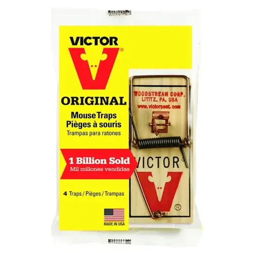 Victor Metal Pedal Mouse Trap - 4 pack The original wooden snap trap - the Victor Metal Pedal Mouse Trap - is also the world?s No. 1 selling mouse trap. Its superior quality and effectiveness are the reason Victor has sold more than 1 billion snap traps around the world. Likewise, professional pest control companies have made this trap their trap of choice. Trusted to control mice for more than 115 years, this trap delivers clean, instant rodent control. How to Set the Trap Learn how to bait and set the classic mouse trap with the help of experts at VICTOR. Once set, a rodent triggers the metal pedal, and the trap immediately springs closed to kill the mouse. Then, simply lift the rugged metal kill bar to dispose of the body. The trap can be disposed of, or reused many times over, at your discretion. Target Unwanted Rodents Victor Metal Pedal Mouse Traps are a time-tested solution for capturing the mice that have invaded your home or business. Mice are able to sneak inside buildings through the tiniest of spaces where they can spread disease and destroy your property