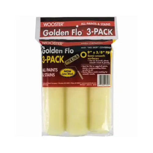 Wooster RR726-9 Paint Roller Cover, 3/8 in Thick Nap, 9 in L, Fabric Cover, Yellow - pack of 3