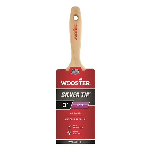 Semi-professional quality at a great value! Silver tip is made with a blend of white and silver WOOSTER CT polyester that virtually eliminates brushmarks. Thin, soft, flexible ends provide exceptional leveling and smoothing. Ideal for latex paints, applying enamels to metal or polyurethanes on wood. Birch hardwood handle for a professional touch.