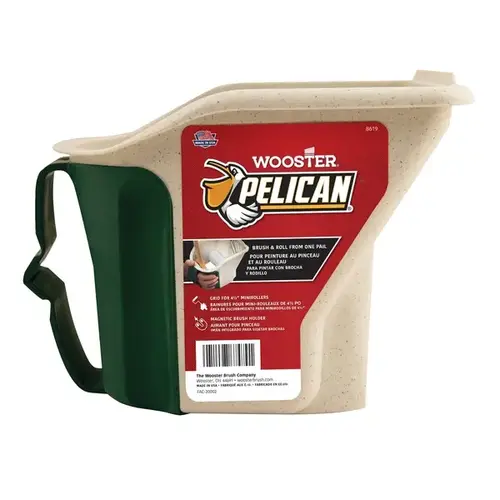 Built-in 5-1/2 in W roll off area. Ledge at top catches excess paint and returns it to pail. Magnet inside holds a brush ferrule. Security strap automatically expands to allow room for larger hands. Side indents provide better grip and control. Soft-feel elastomer adds more comfort. Durable, 1-piece polypropylene construction resists solvent and paint build-up. 8-1/2 in x 7 in x 6-1/2 in.