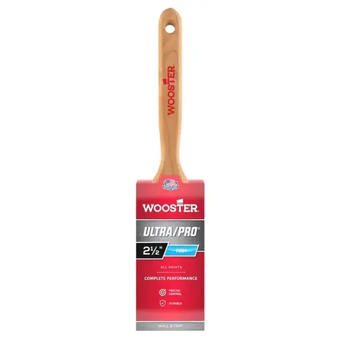Ultra-high production makes Ultra/Pro Firm the best-selling blend and a favorite for over 25 years. Featuring a mix of nylon and polyester, it's truly an all-purpose professional brush for use in acrylics, latex or enamels, indoors and out. With fantastic coverage and masterful cut-in control, it saves painters time wherever a firm brush is needed. Look for the purple and sable brown filament and the maroon stamp on the handle.