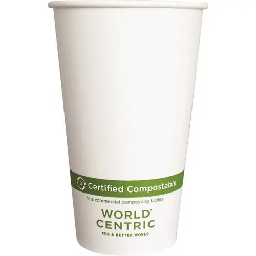 World Centric Paper Hot Cup. Bio-Lining Made From Plants Creates A Moisture Barrier. Suitable For Liquids Up To 220 degreeF And Freezer Safe. Great For Warm Beverages Like Coffee, Tea, And Hot Cocoa. Mfg #CUPA16