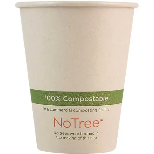 World Centric NoTree Paper Hot Cup. Made From Rapidly Renewable, Unbleached Sugarcane Paper. No Trees Are Used To Make Notree Cups. Bio-Lining Made From Plants Creates A Moisture Barrier. Mfg #CUSU8