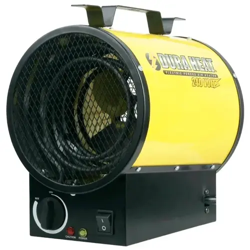 Nearly 13,000 Btu's in an instant! The EUH4000's 3750 W provide powerful heating to your work space. The tubular cabinet design of this electric forced air heater maximizes heat distribution. The EUH4000 can be portable or it can be mounted to the wall or ceiling with the included mounting kit. Both options make it the ideal choice for jobsites, workshops, warehouses, agricultural buildings and many other heating areas. The heavy-duty construction includes a stainless steel heating element, heavy-gauge cabinet, built-in turbo fan and overheat shut-off.