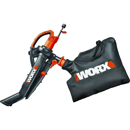 The WORX Trivac 3-in-1 blower/mulcher/yard vacuum brings all three functions together in one compact, lightweight machine with a metal impeller: a great blower, a handy mulcher and a powerful yard vacuum. As a blower, the Trivac produces an airspeed of up to 210 mph, strong enough for the toughest wet leaves and debris. While vacuuming, the high impact-resistant impeller mulches leaves up to 1/10 of their original size. When in vacuum mode, the powerful motor in the Trivac generates 350 cu-ft of airflow per minute.