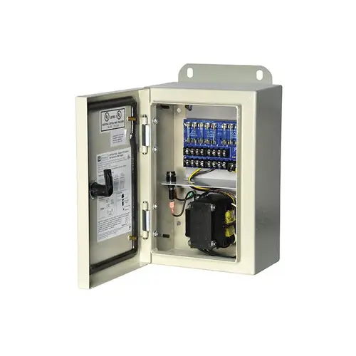 Outdoor CCTV AC Power Supply, 115VAC 50/60Hz at 1.76A Input, 8 Fuse Protected Outputs 24VAC at 7A or 28VAC at 6.25A, Grey Enclosure