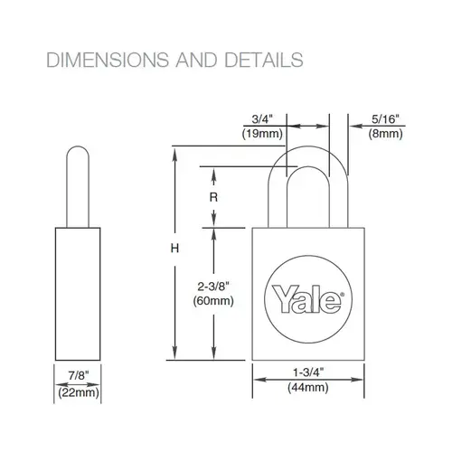 Fixed Core Padlock, 6-Pin, 5/16" Diameter Shackle, Keyed Different