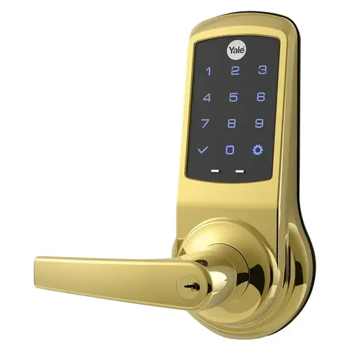 Nextouch Generation 2 Keypad Cylindrical Lock, Capacitive Touchscreen, Monroe Lever, Cylinder Override, Conventional Cylinder, Bright Brass Finish, Non-handed