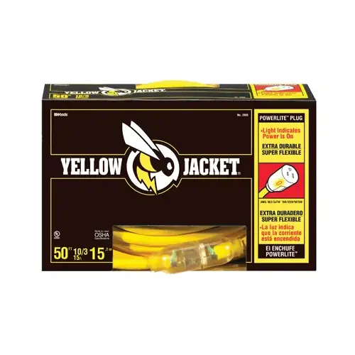 Exclusive Yellow Jacket compound is more flexible and abrasion resistant at any temperature than standard vinyl compounds. Yellow Jacket extension cords feature a power indicator light in the female receptacle to show that the power is on.