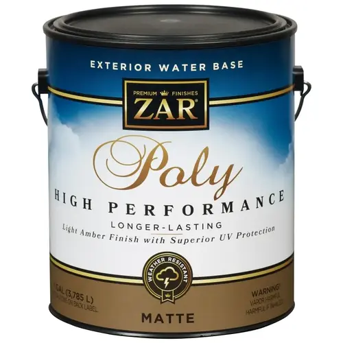 Formulated exclusively to deliver superior performance on exterior wood surfaces, ZAR exterior water-base poly high performance contains ultraviolet radiation absorbers and antioxidants. It is the ideal choice for surfaces that would benefit from a clear protective coating siding, gables and patio furniture, as well as steel and fiberglass entry doors. Environmentally safe, ZAR exterior water-base poly high performance is the perfect finish for surfaces exposed to direct sunlight and the harsh extremes of weather. The full-bodied formula brushes on like a conventional (oil-based) polyurethane for maximum durability and beauty.