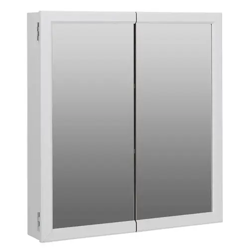The Zenith Bi-View Medicine Cabinet has a timeless look and classic wood body construction that make it right at home in any bathroom update, whether in a traditional or contemporary setting. The cabinet's convenient bi-view mirror opens to reveal two wood shelves that are adjustable in height to suit your custom storage needs. Made for easy surface-mount installation, the cabinet features decorative molding and a neutral white finish that allow it to fit in seamlessly with almost any existing room decor.