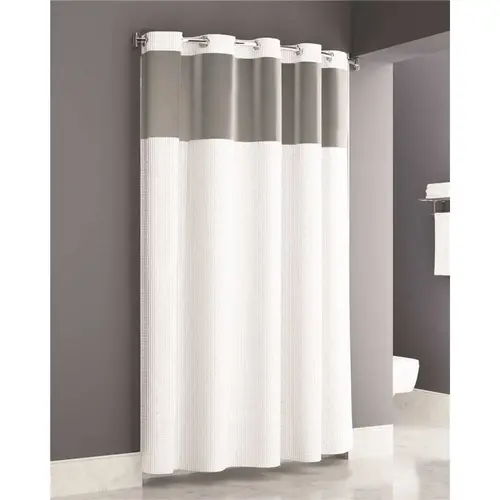 Zenna Exto Waffle Easy Hang White Shower Curtain 71X74 Sheer Window With Waterproof Liner Attached-Chrome Hook Easy Hang Shower Curtain 100% Polyester Sheer Window Waterproof Liner With Magnets In The Corners Ultrasonic Hem Case Of 12 Mfg #EW7174ZVWW