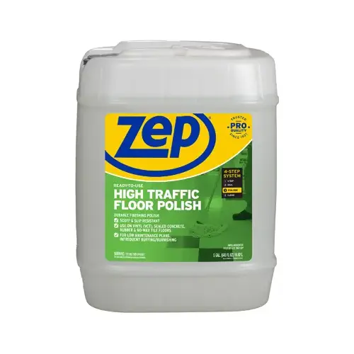 High-traffic floor polish gives a professional grade floor finish for a range of hard floor surfaces. Its 20% solid formula provides a durable, high-gloss shine that resists scuffs and heel marks and prevents slips. The low VOC (less than 1%) product requires little maintenance and is intended for use on interior floors such as rubber, asphalt, vinyl and sealed concrete. This is step 3 of the zap floor care 4-step program. It can be stripped and reapplied as needed.
