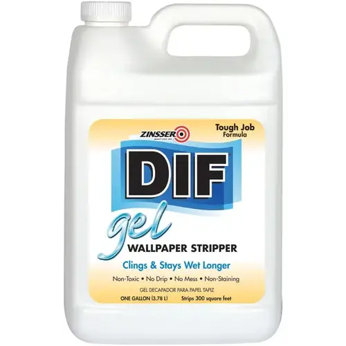 For your most stubborn wallcoverings and adhesives, choose Rust-Oleum ZINSSER DIF gel wallpaper stripper. This ultra-powerful, enzyme-based gel clings to the wall, stays wet and does the work while you wait. The low-odor, ready-to-use solution loosens nearly all types of wallcoverings without the use of caustic chemicals.
