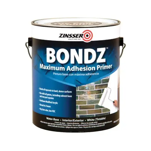 Prep slick, glossy surfaces with RUST-OLEUM ZINSSER BONDZ maximum adhesion primer. This water-based, low-VOC primer has great flow and leveling and adheres to surfaces that typically resist coatings. Create a strong bond for any topcoat (even solvent-based/epoxies).