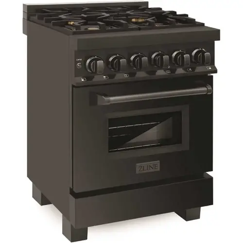 Luxury isn't meant to be desired - it's meant to be attainable. Designed in Lake Tahoe, USA, the ZLINE 24" 2.8 cu. ft. Dual Fuel Range with Gas Stove and Electric Oven in Black Stainless Steel with Brass Burners (RAB-BR-24) provides a professional culinary experience by pairing unmatched performance with timeless style. Achieve ZLINE Attainable Luxury excellence with innovative features designed to enhance your kitchen's capability.