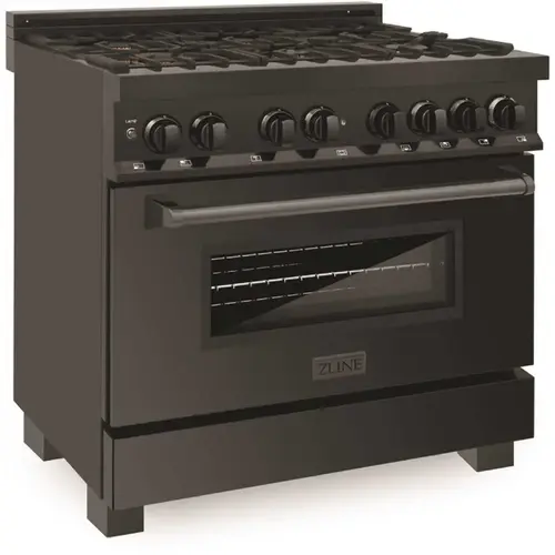 Luxury isn't meant to be desired - it's meant to be attainable. Designed in Lake Tahoe, USA, the ZLINE 36" 4.6 cu. ft. Dual Fuel Range with Gas Stove and Electric Oven in Black Stainless Steel with Brass Burners (RAB-BR-36) provides a professional culinary experience by pairing unmatched performance with timeless style. Achieve ZLINE Attainable Luxury excellence with innovative features designed to enhance your kitchen's capability.