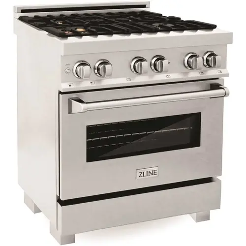 Luxury isn't meant to be desired - it's meant to be attainable. Designed in Lake Tahoe, USA, the ZLINE 30" 4.0 cu. ft. Dual Fuel Range with Gas Stove and Electric Oven in Fingerprint Resistant Stainless Steel and Brass Burners (RAS-SN-BR-30) provides a professional culinary experience by pairing unmatched performance with timeless style. Achieve ZLINE Attainable Luxury excellence with innovative features designed to enhance your kitchen's capability.