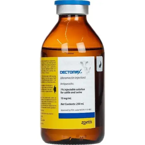 DECTOMAX Injectable controls more parasite species and larval stages than any other single-ingredient injectable parasite control product. For the treatment and control of gastrointestinal roundworms, lungworms, eyeworms, grubs (see precautions), sucking lice and mange mites.